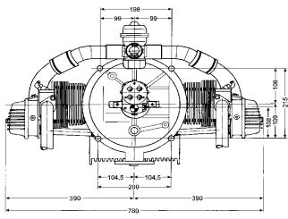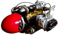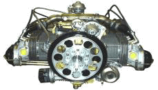 4 cylinder 4 stroke air cooled engine with horizontally opposed cylinders, hydraulic valves, automatic carburetor, mechanical fuel pump, magneto single or magneto-electronic dual ignition, wet sump pressure lubrication.